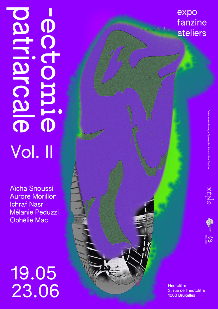 -ectomie patriarcale volume II fait partie d’une série d’expositions collectives initiée en 2019. Cinq artistes plasticiennes et performeuses continuent leur dialogue : Aïcha Sñoussi, Aurore Morillon, Ichraf Nasri, Mélanie Peduzzi et Ophélie Mac.