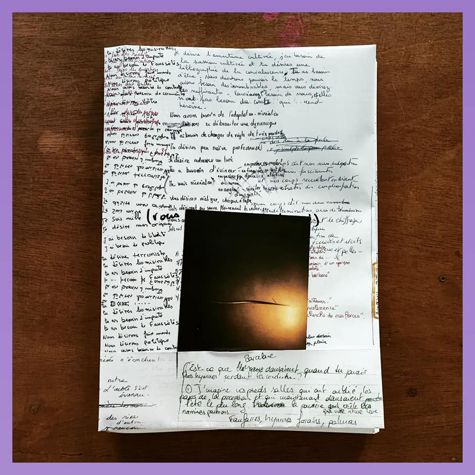 L’édition a été conçue lors du workshop avec Valentine Bonomo avec certain.e.s des participant.e.s de l’appel et a été fabriquée par aurore morillon et Marion Lissarrague.