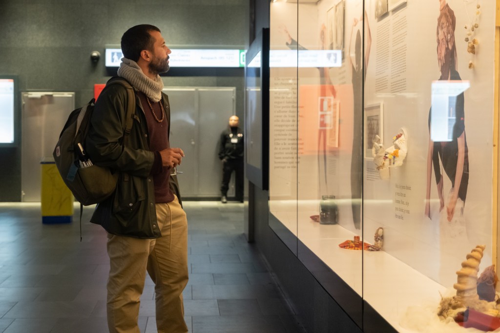 Elles s’interrogent sur la marche vers l’ailleurs, le franchissement d’une limite, ce changement d’un état à un autre. L’espace d’un passage et l’espace de la frontière. Dans un lieu de passage comme Bruxelles, les corps transitent. Certain.e.s décident de s’arrêter, d’autres continuent leur chemin. Ici l’on pourra entre apercevoir une photographie en courant après le dernier métro, ou flâner un samedi après-midi devant une des vidéos. Les témoignages d’immigration que l’exposition offre, seront des temps d’arrêts, les respirations que l’urgence du départ, la peur de l’arrivée n’a pas permis. Il s’agit de faire de ce moment de transition un espace plein, à part entière et sans ellipse.