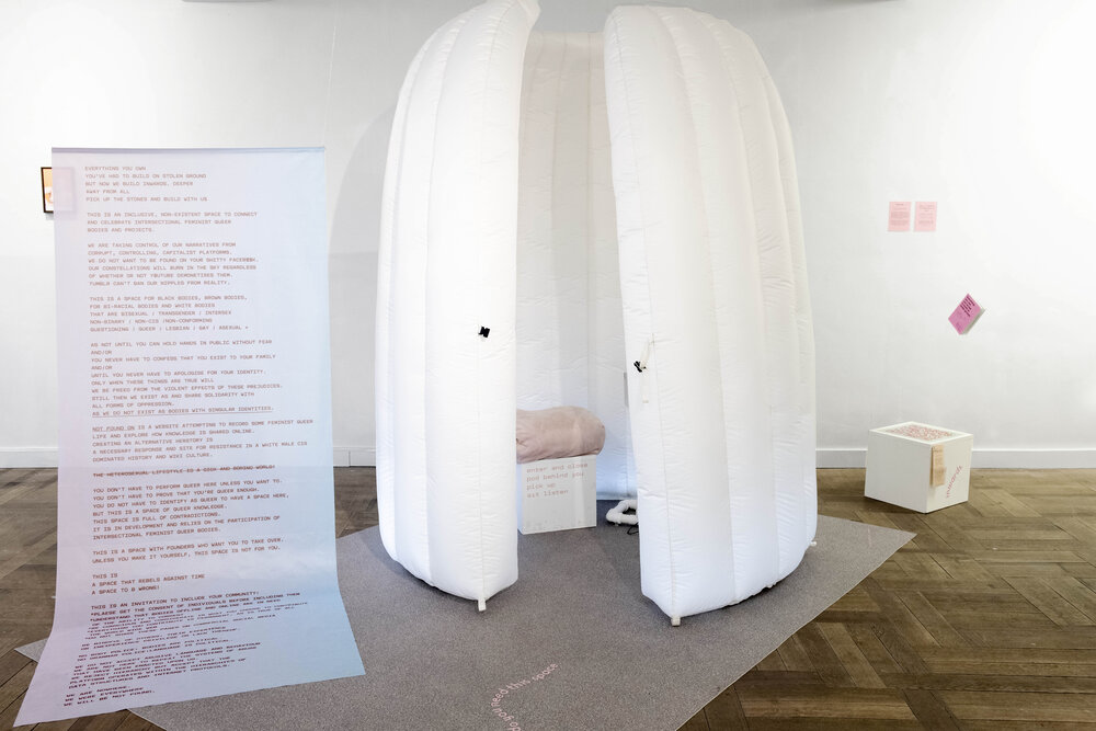 questionnements autour de l’intersectionnalité des luttes. Un corps de femme, racisé, gros ou maigre, un corps qui exprime un genre non normé n’est jamais neutre. Que se passe-t-il quand ces identités se superposent ? En outre, les orientations sexuelles se définissent en accord avec ou en marge des représentations dominantes. C’est donc dans cet espace que l’art, comme outil de réflexion sur l’image, peut agir.